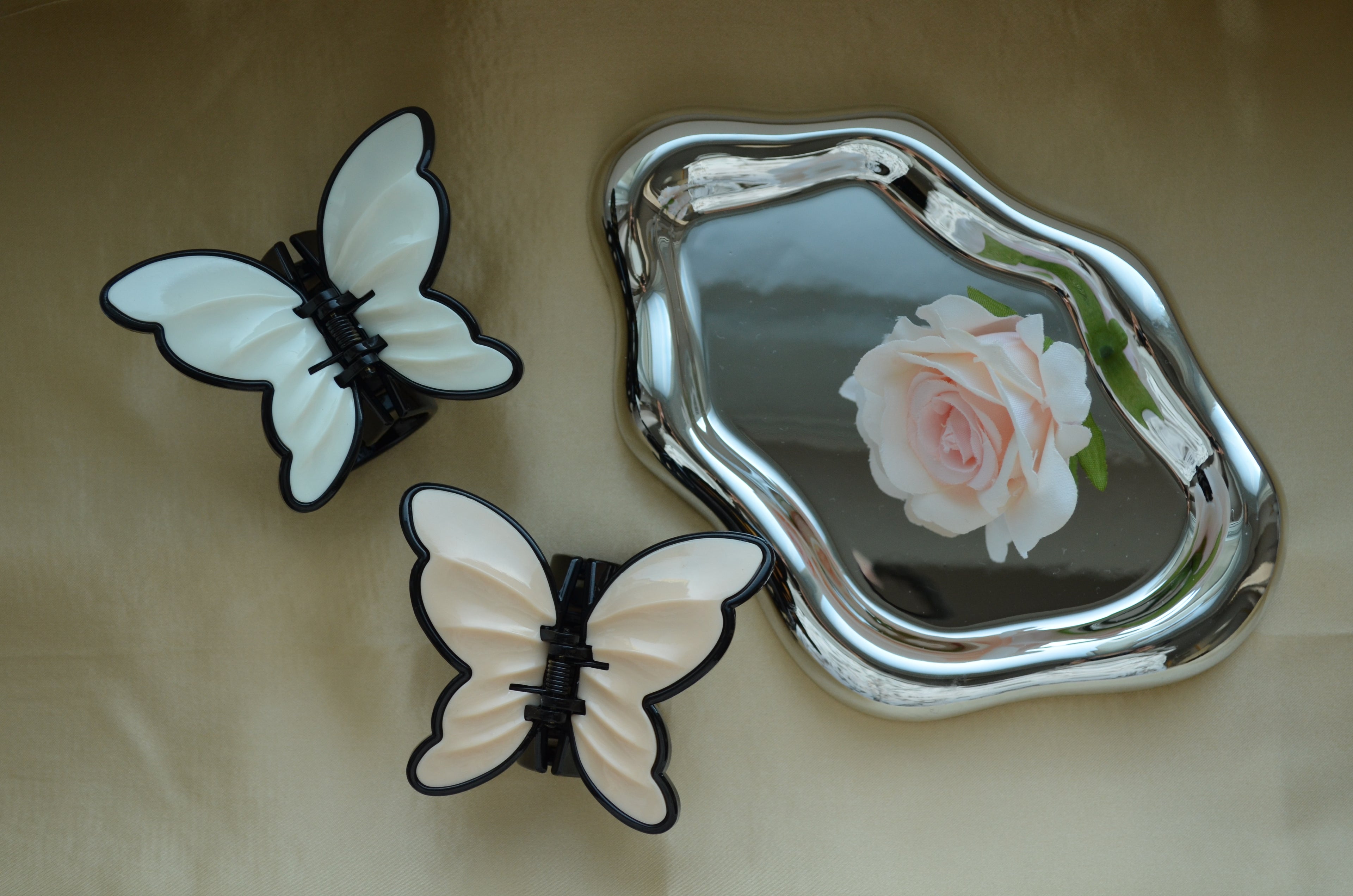 Elegant Vaniljvit och svart Akrylfjärilshårklämma